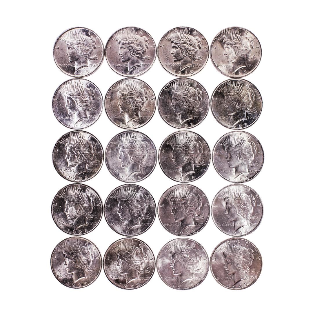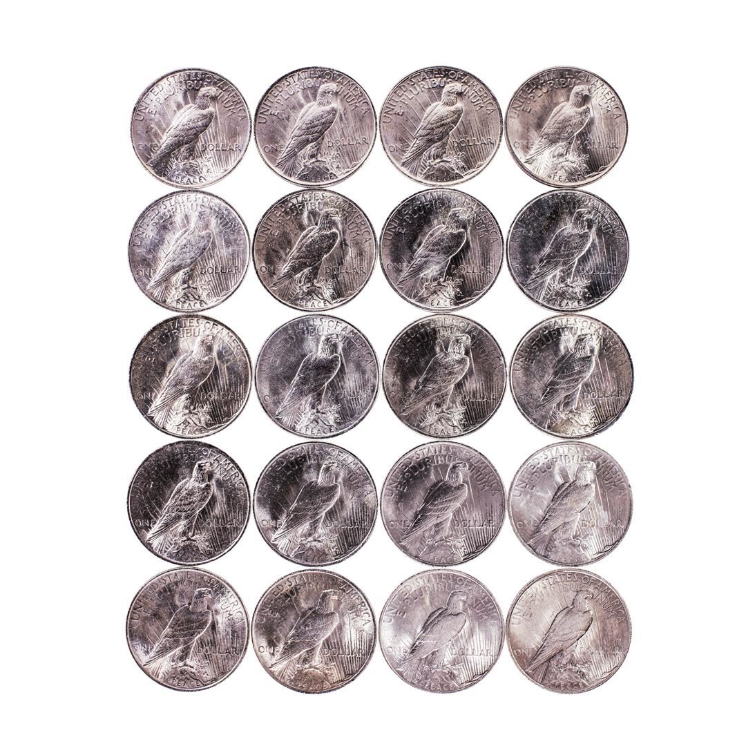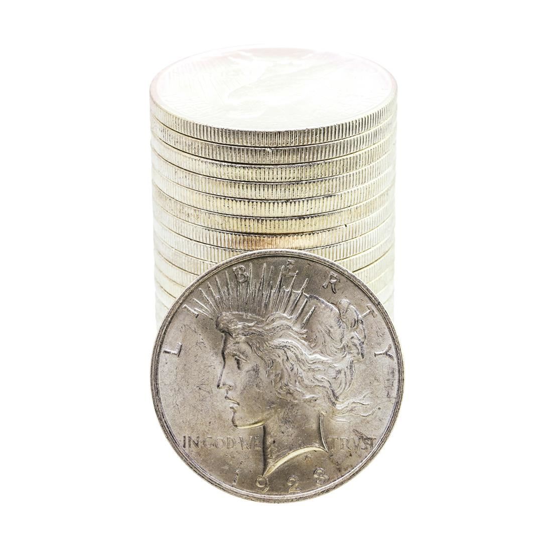 Roll of (20) Brilliant Uncirculated 1923 $1 Peace Silver Dollar Coins