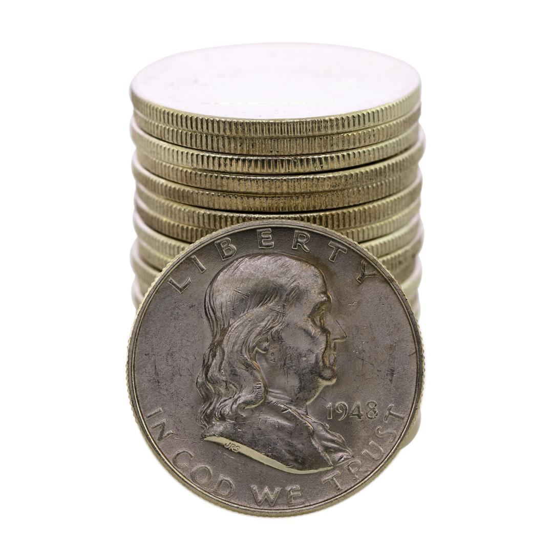 Roll of (20) Brilliant Uncirculated 1948-D Franklin Half Dollar Coins