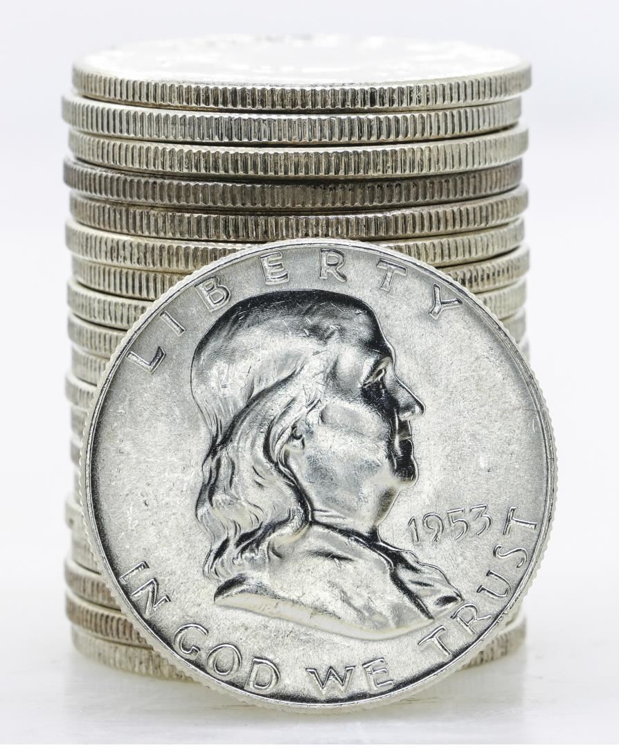 Roll of (20) Brilliant Uncirculated 1953 Franklin Half Dollar Coins