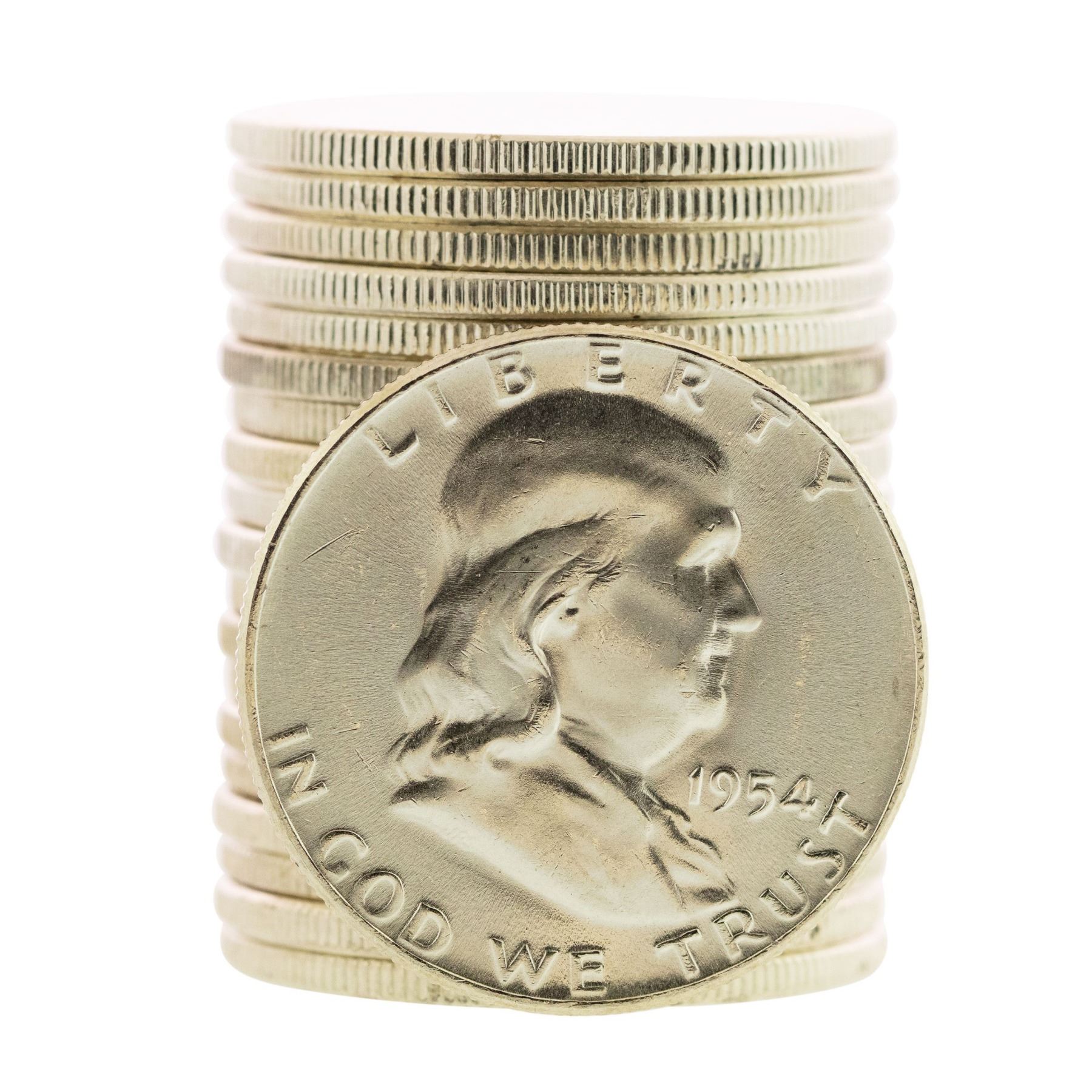 Roll of (20) Brilliant Uncirculated 1954 Franklin Half Dollar Coins