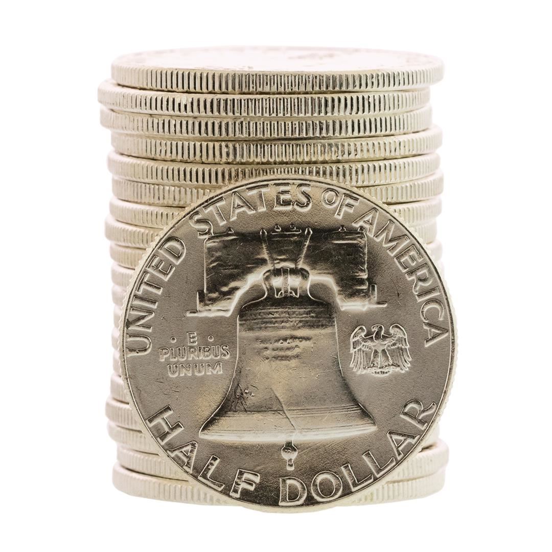 Roll of (20) Brilliant Uncirculated 1958 Franklin Half Dollar Coins