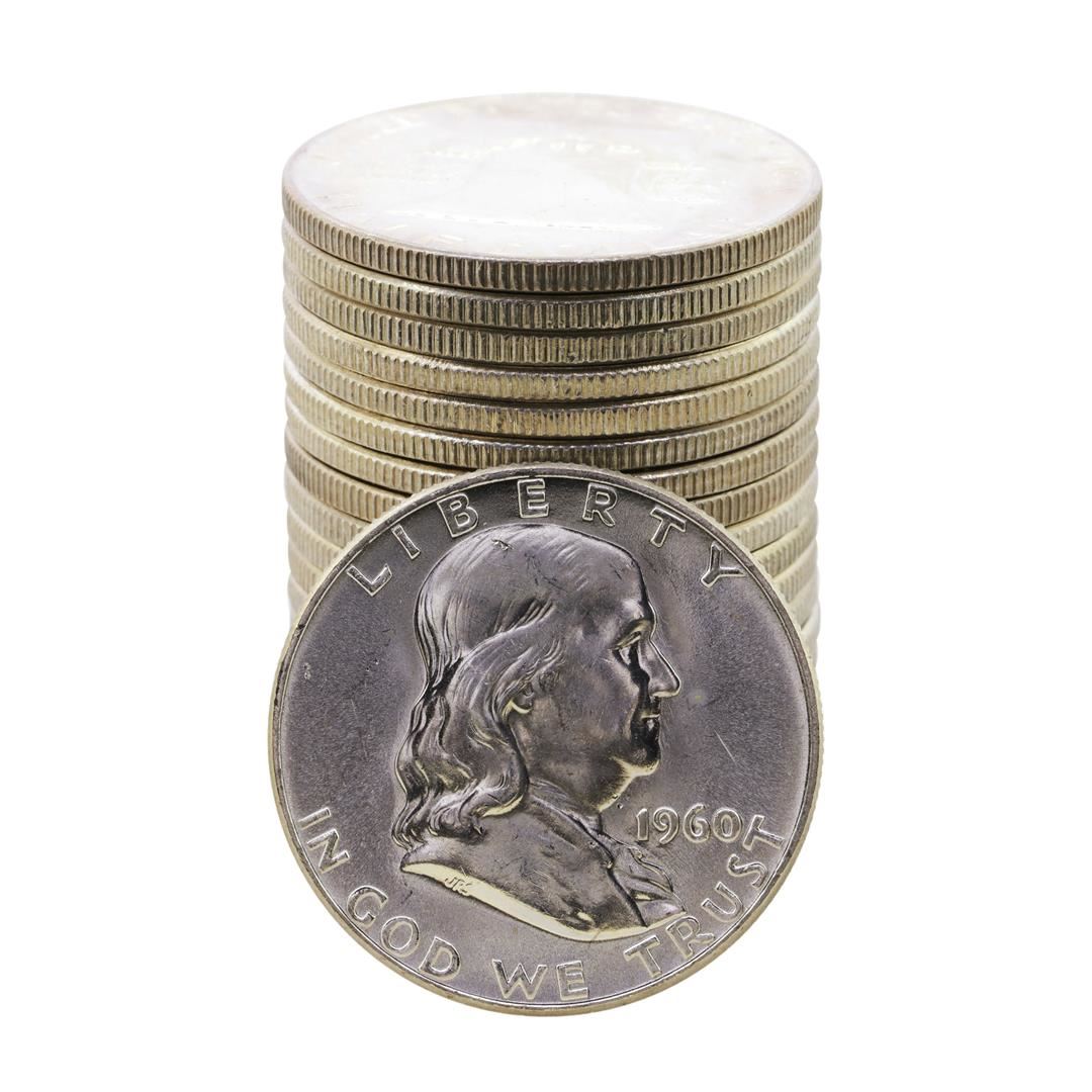 Roll of (20) Brilliant Uncirculated 1960 Franklin Half Dollar Coins