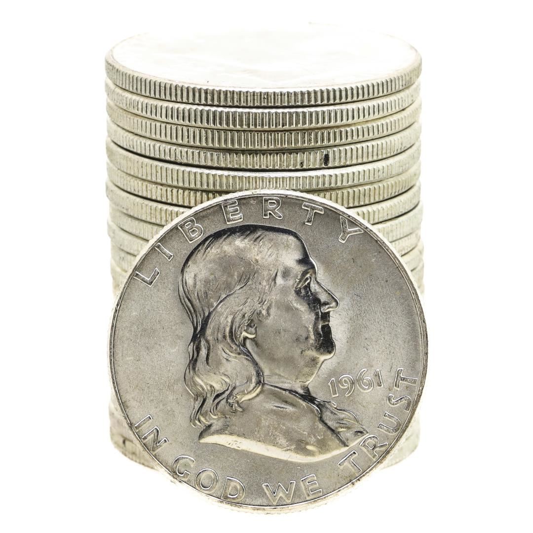Roll of (20) Brilliant Uncirculated 1961 Franklin Half Dollar Coins