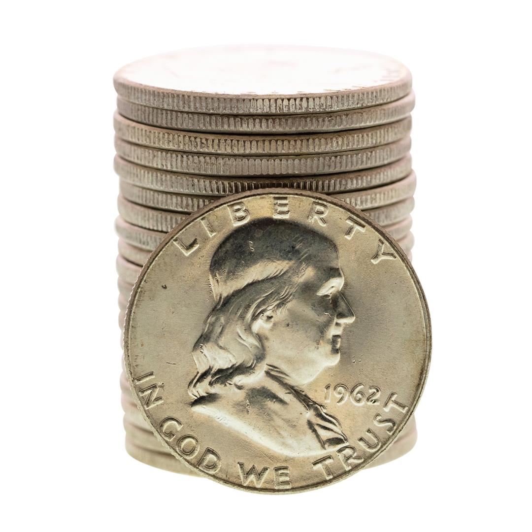Roll of (20) Brilliant Uncirculated 1962 Franklin Half Dollar Coins