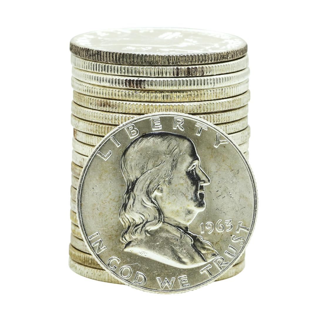 Roll of (20) Brilliant Uncirculated 1963-D Franklin Half Dollar Coins