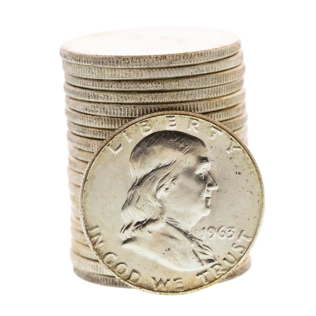 Roll of (20) Brilliant Uncirculated 1963 Franklin Half Dollar Coins