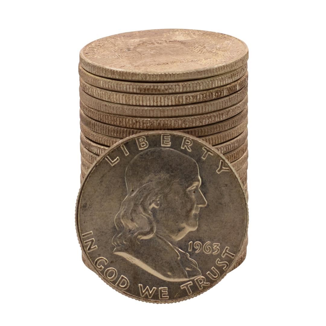 Roll of (20) Brilliant Uncirculated 1963 Franklin Half Dollar Coins