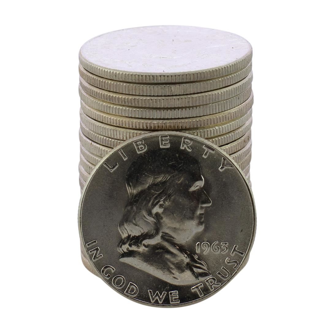 Roll of (20) Brilliant Uncirculated 1963 Franklin Half Dollar Coins