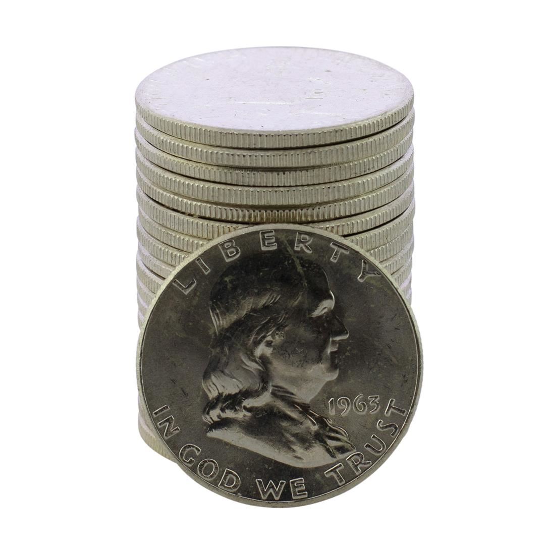 Roll of (20) Brilliant Uncirculated 1963 Franklin Half Dollar Coins