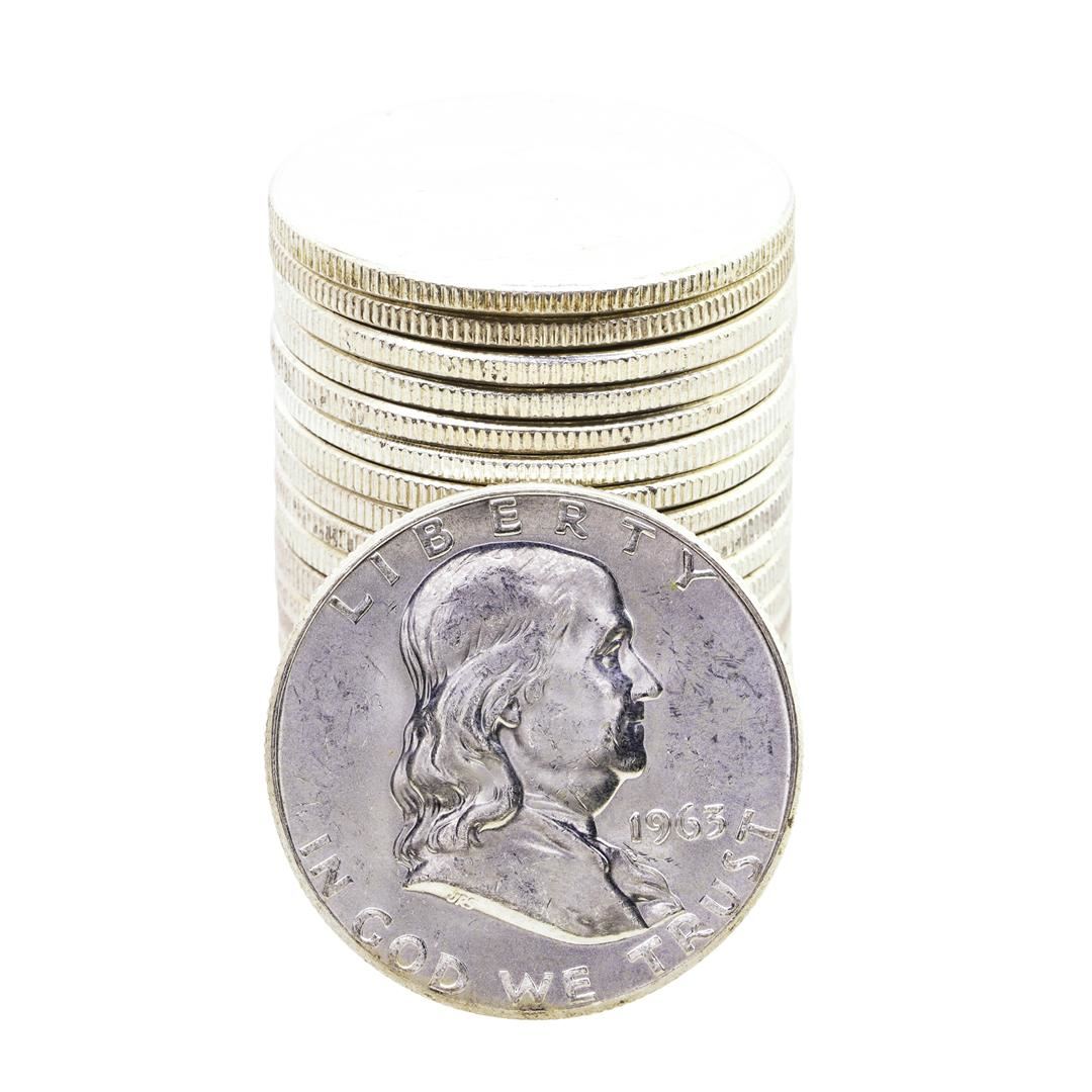 Roll of (20) Brilliant Uncirculated 1963 Franklin Half Dollar Coins