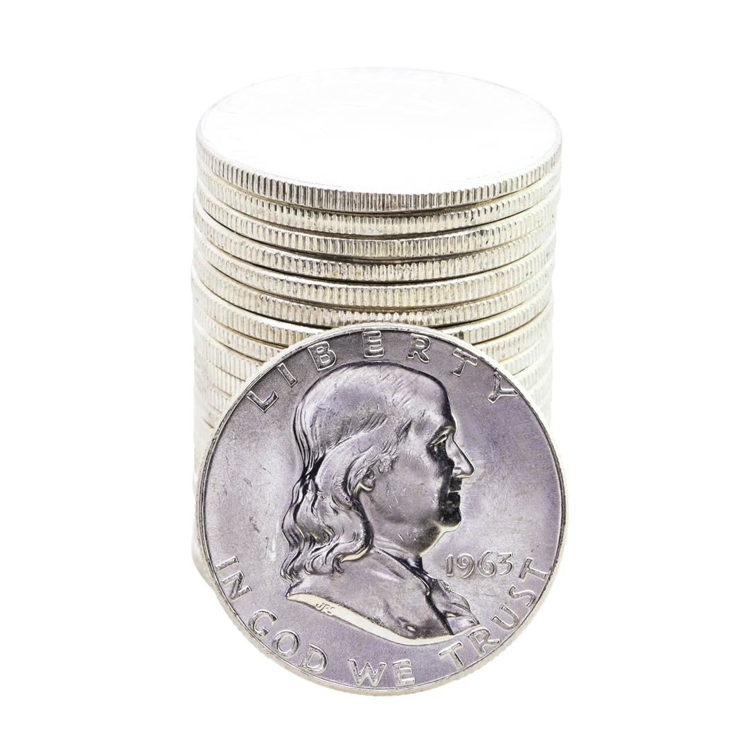 Roll of (20) Brilliant Uncirculated 1963 Franklin Half Dollar Coins