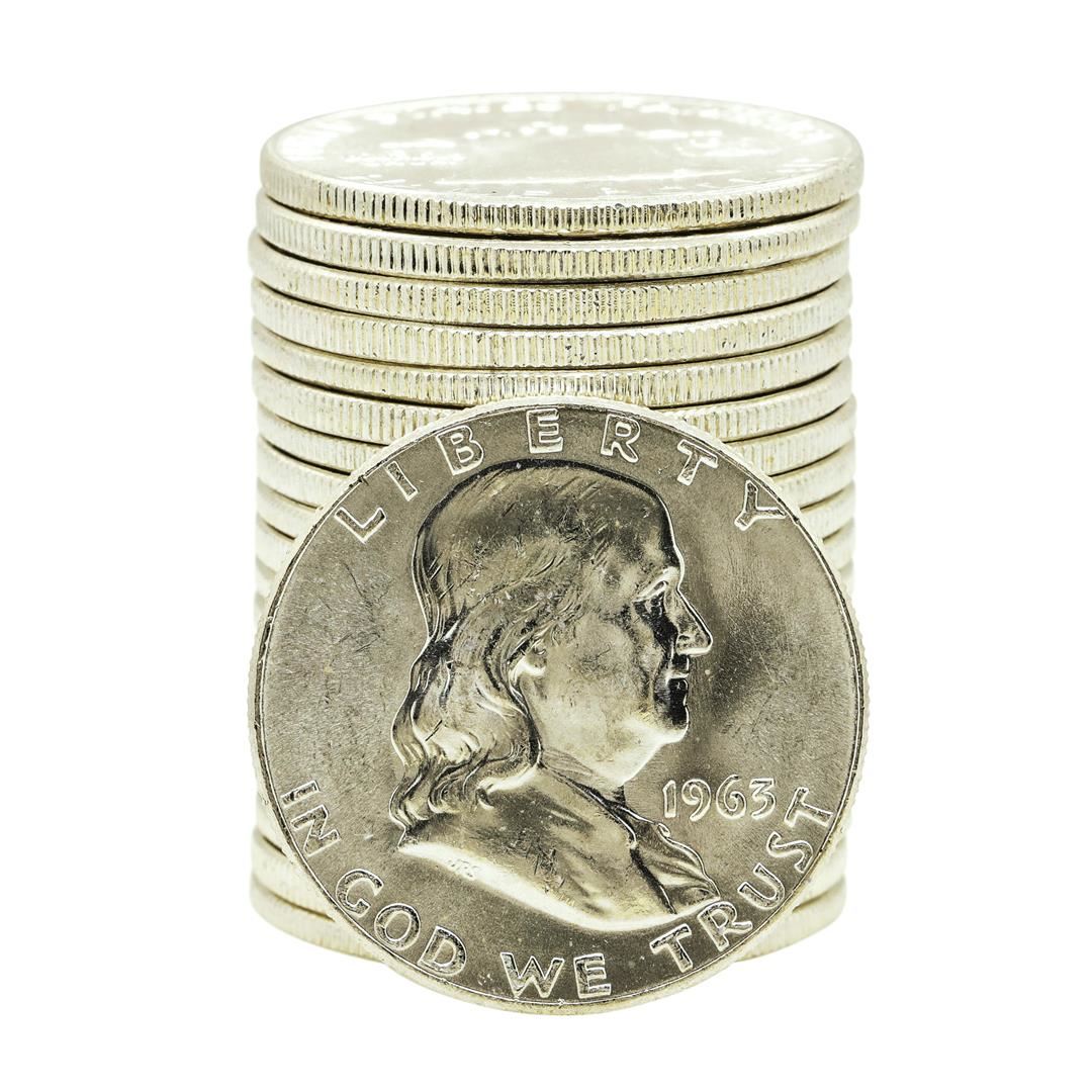 Roll of (20) Brilliant Uncirculated 1963 Franklin Half Dollar Coins