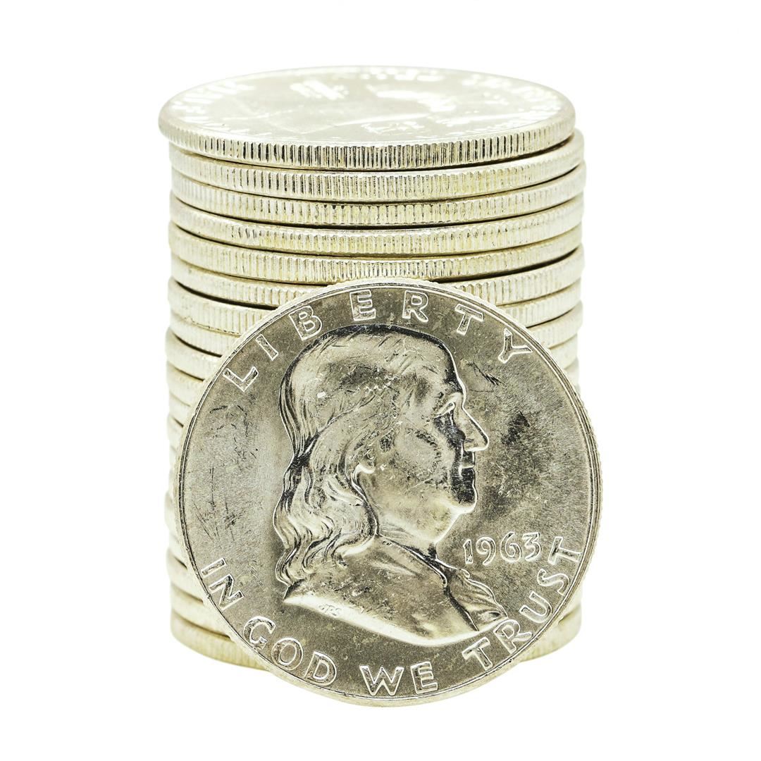 Roll of (20) Brilliant Uncirculated 1963 Franklin Half Dollar Coins