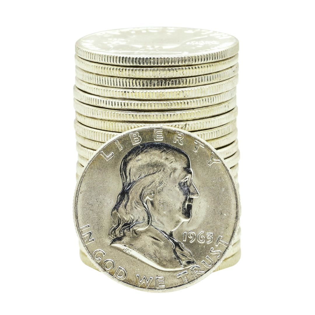 Roll of (20) Brilliant Uncirculated 1963 Franklin Half Dollar Coins