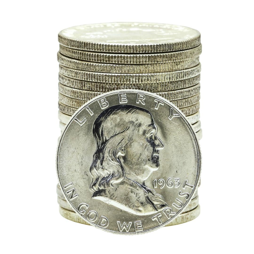 Roll of (20) Brilliant Uncirculated 1963 Franklin Half Dollar Coins