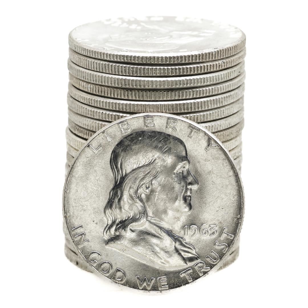 Roll of (20) Brilliant Uncirculated 1963 Franklin Half Dollar Coins