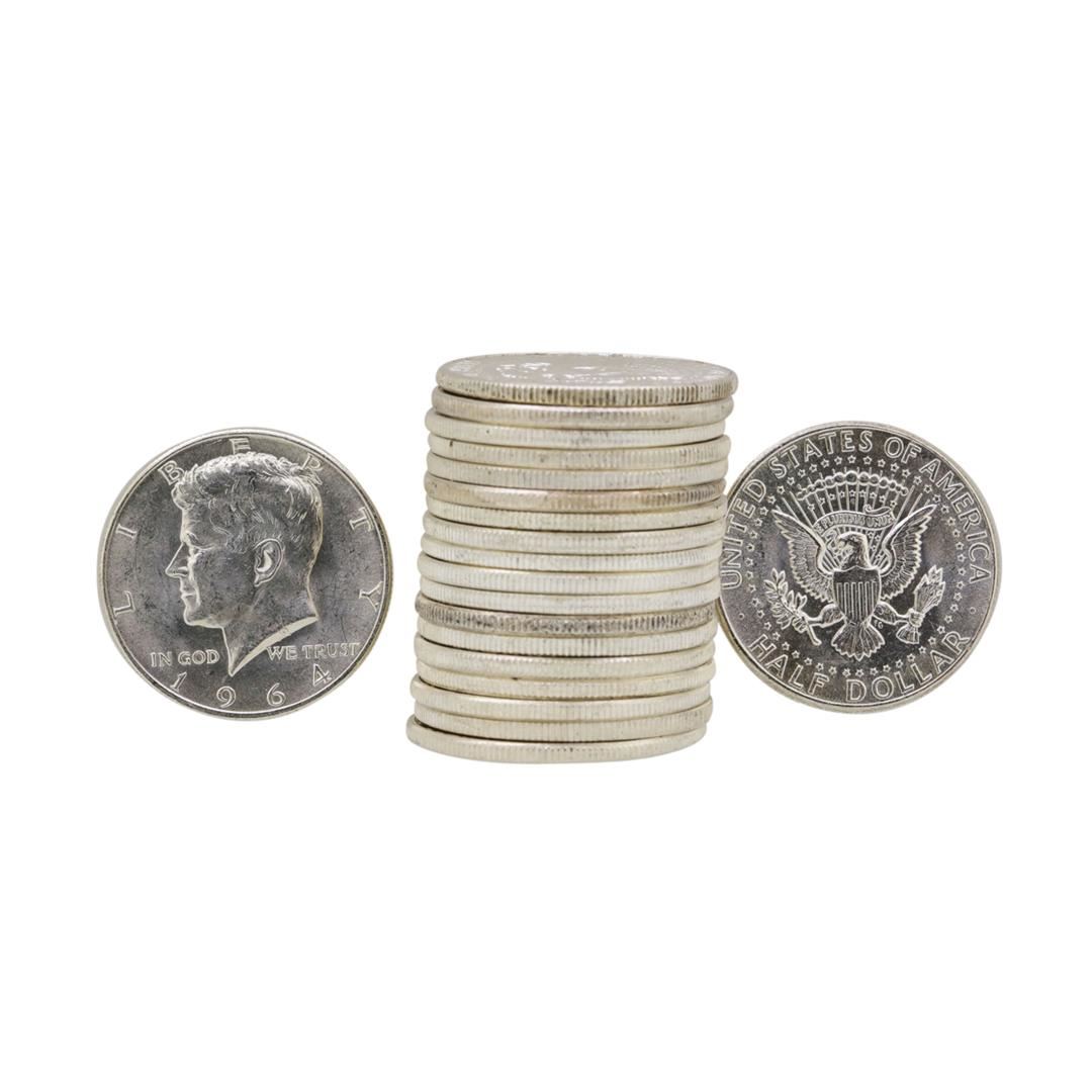 One Roll of (20) Brilliant Uncirculated 1964 Kennedy Half Dollar Coins.