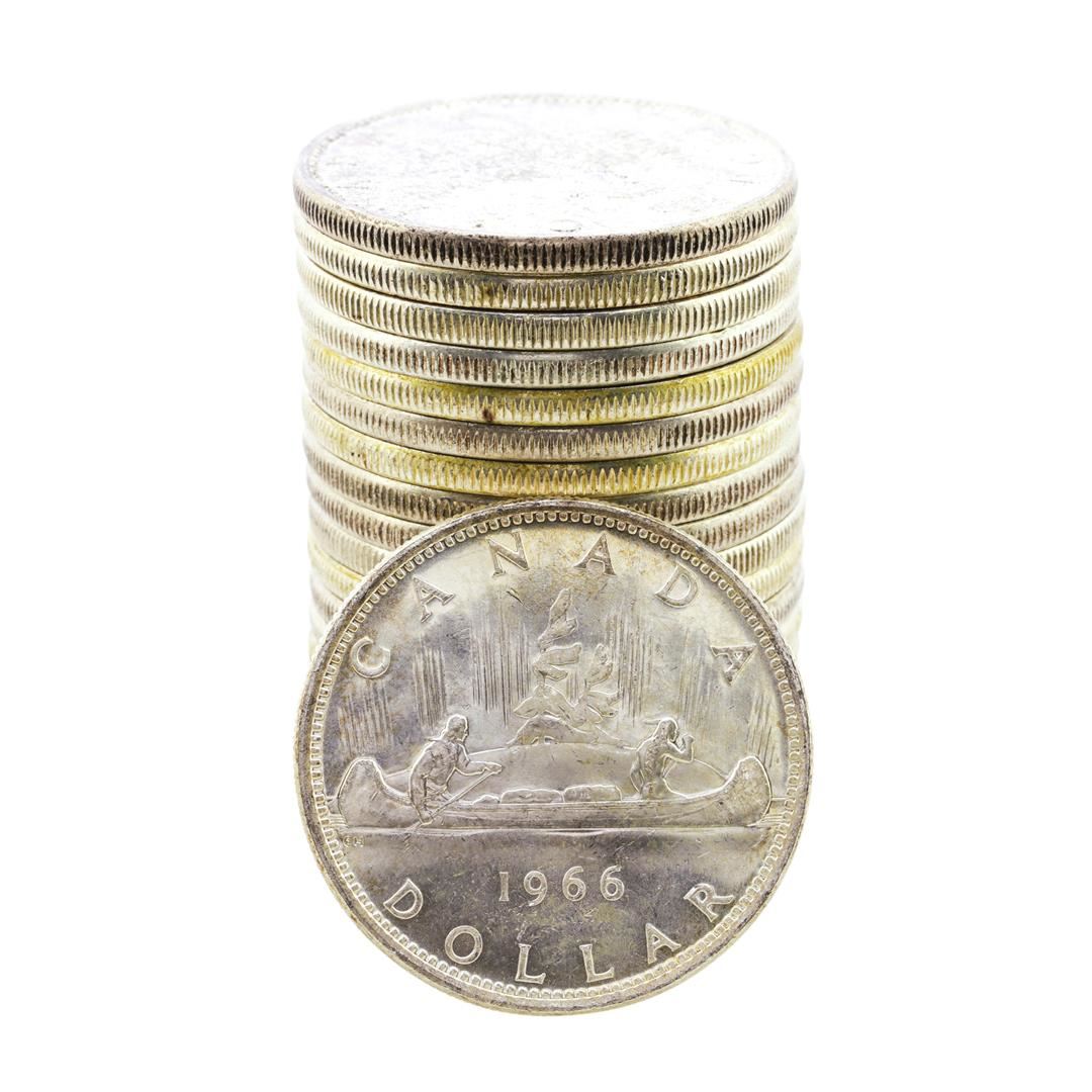 Roll of (20) Brilliant Uncirculated 1966 Canadian Silver Dollar Coins
