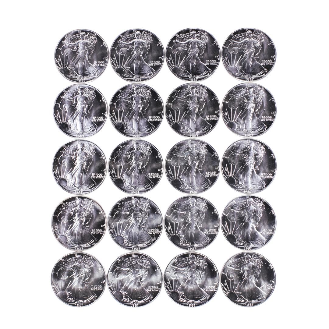 Roll of (20) Brilliant Uncirculated 1987 $1 American Silver Eagle Coins