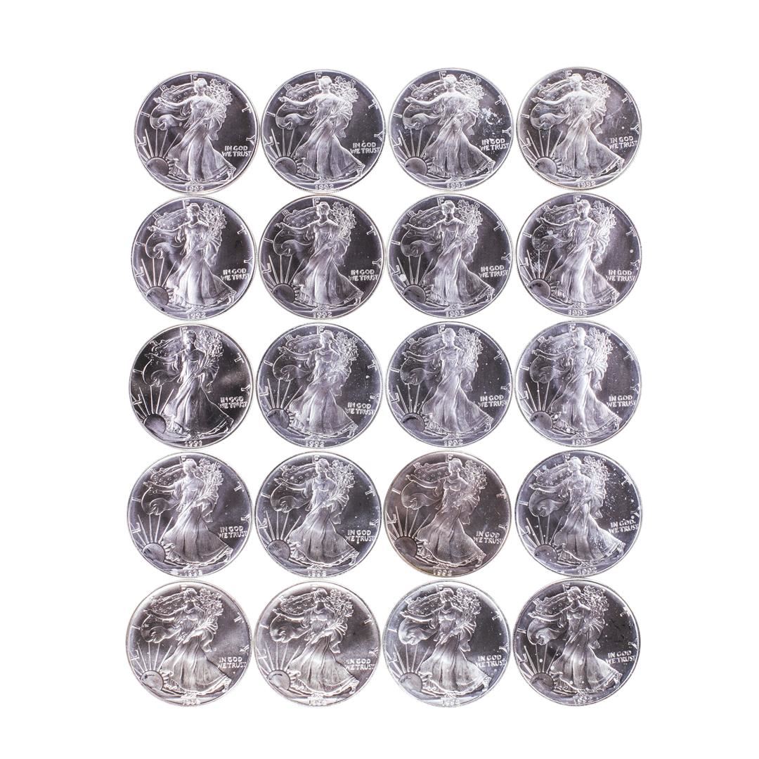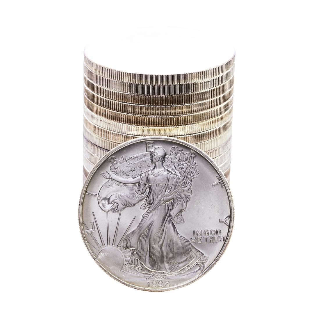 Roll of (20) Brilliant Uncirculated 1992 $1 American Silver Eagle Coins