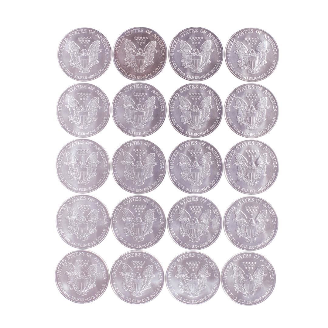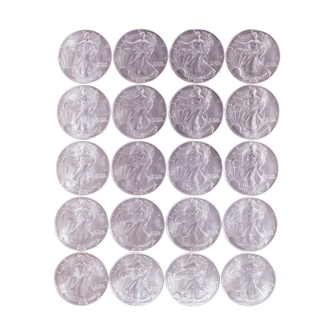Roll of (20) Brilliant Uncirculated 2002 $1 American Silver Eagle Coins