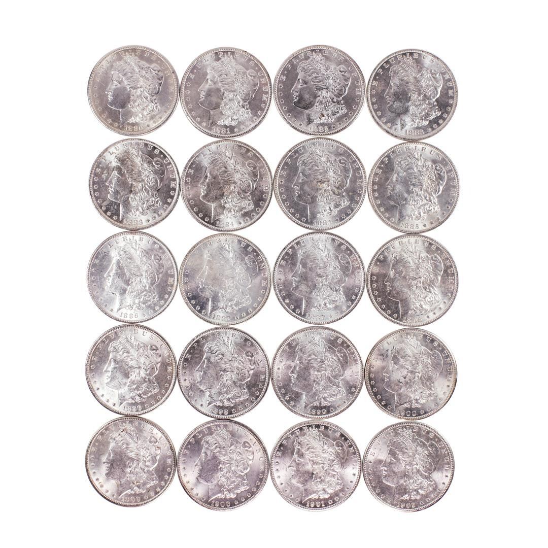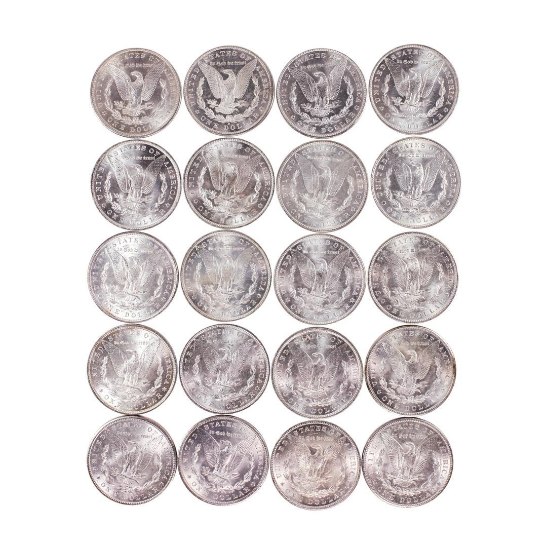 One Roll of (20) Brilliant Uncirculated Pre-1921 $1 Morgan Silver Dollar Coins.