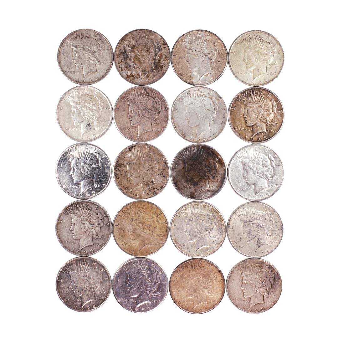 One Roll of (20) Mixed Date $1 Peace Silver Dollar Coins.