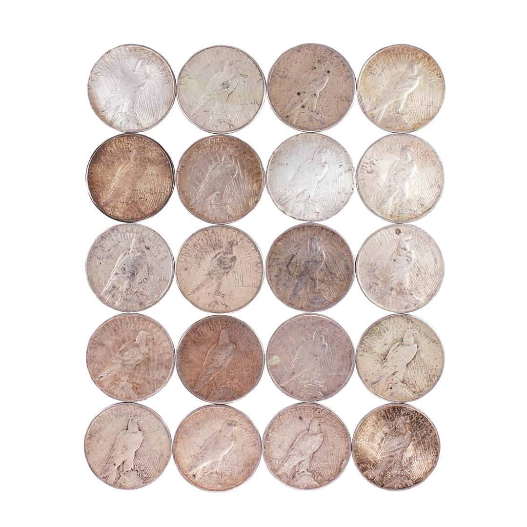 One Roll of (20) Mixed Date $1 Peace Silver Dollar Coins.