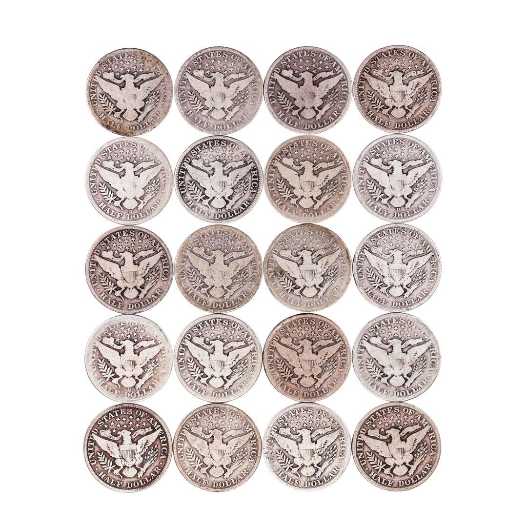 One Roll of (20) Mixed Date Barber Half Dollar Coins.
