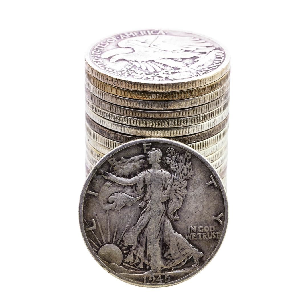 One Roll of (20) Mixed Date Walking Liberty Half Dollar Coins.