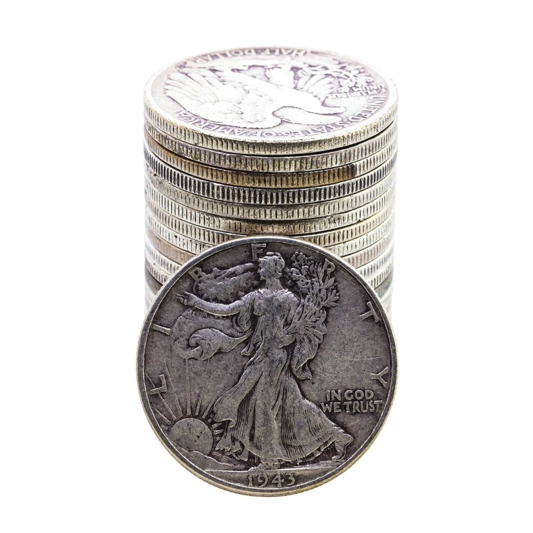 One Roll of (20) Mixed Date Walking Liberty Half Dollar Coins.