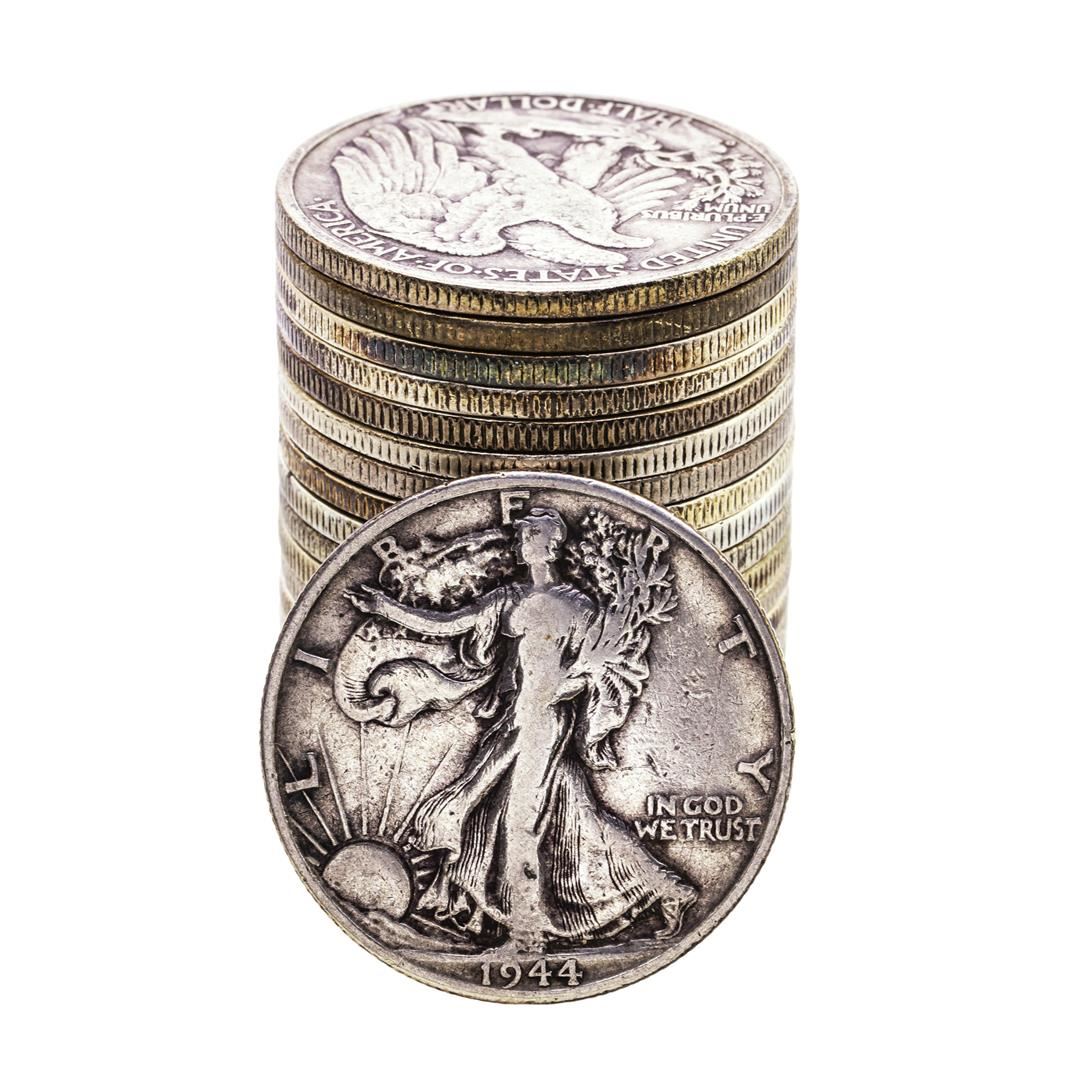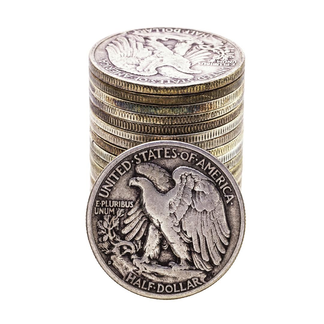One Roll of (20) Mixed Date Walking Liberty Half Dollar Coins.