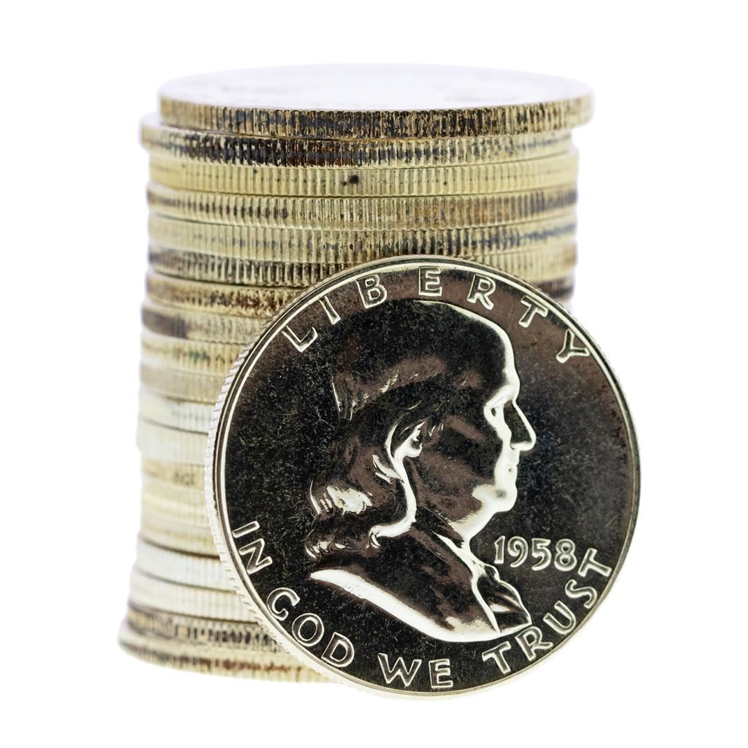 One Roll of (20) Proof 1958 Franklin Half Dollar Coins.