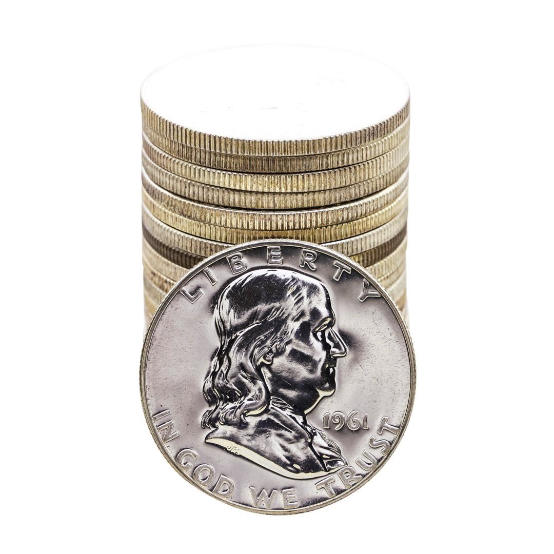 One Roll of (20) Proof 1961 Franklin Half Dollar Coins.