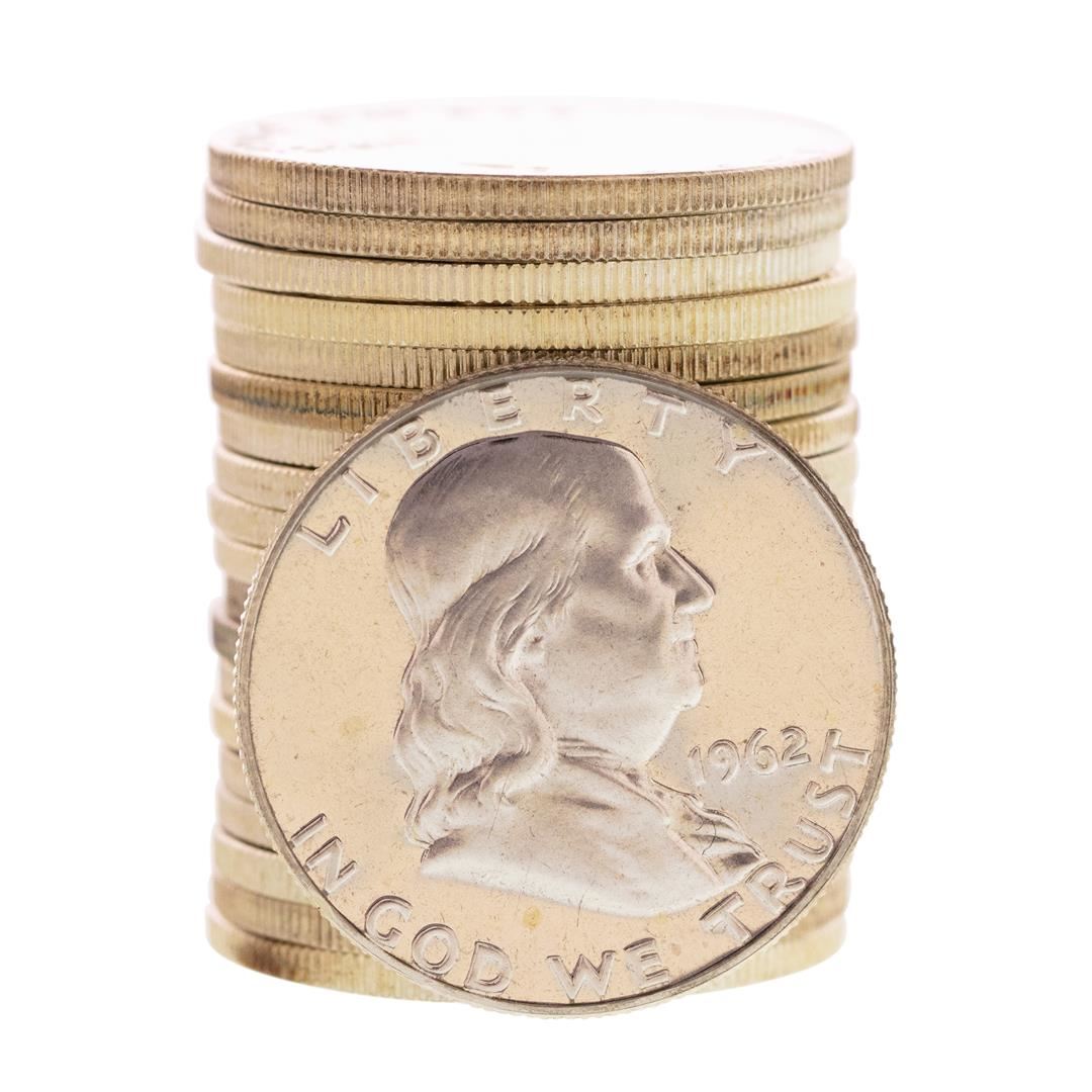 One Roll of (20) Proof 1962 Franklin Half Dollar Coins.