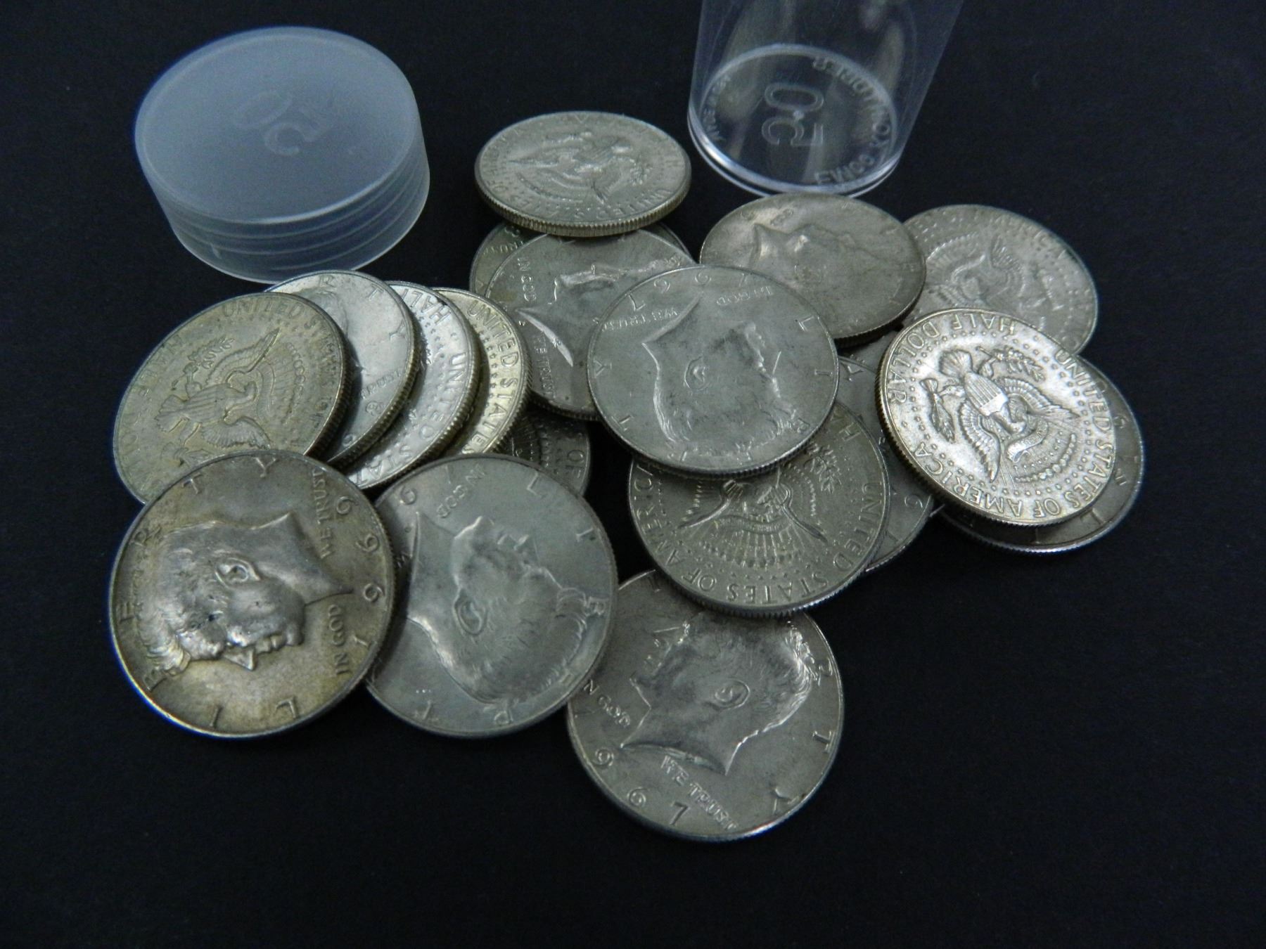 Roll of 20 (Twenty) 40% Silver Kennedy 1/2 Dollars, Possible Date Range 1965-1969, All One Money