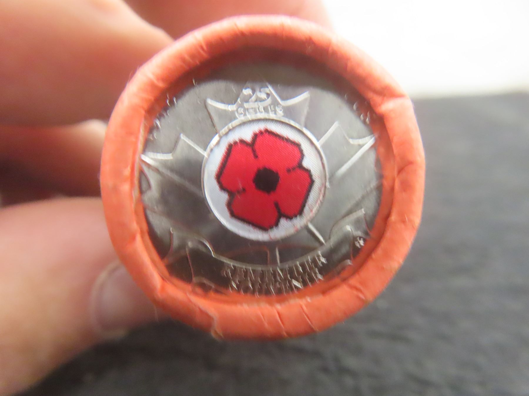 Roll of 2008 Canadian Remembrance Poppy Coloured 25¢ Coins