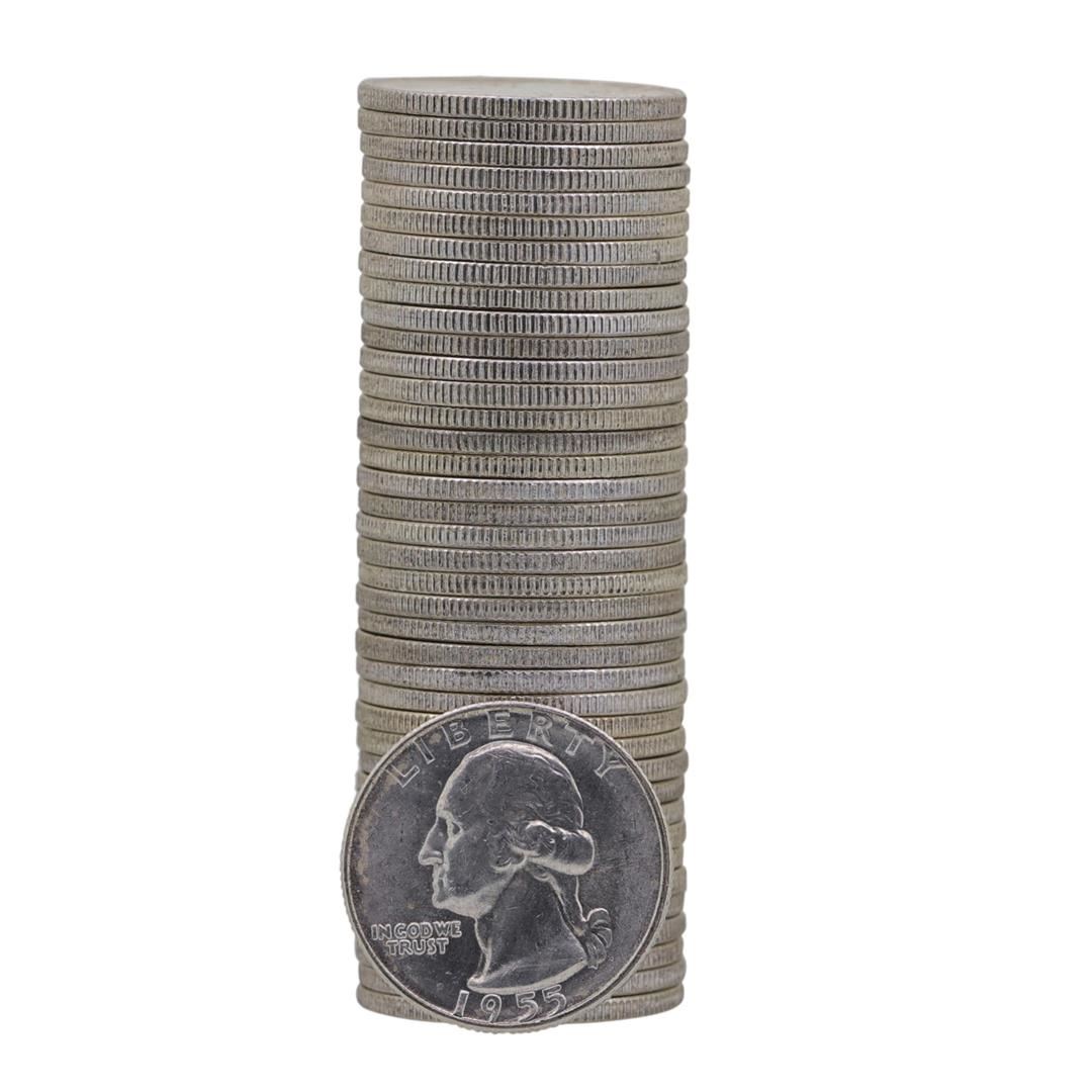 One Roll of (40) 1955-D Brilliant Uncirculated Washington Quarters.