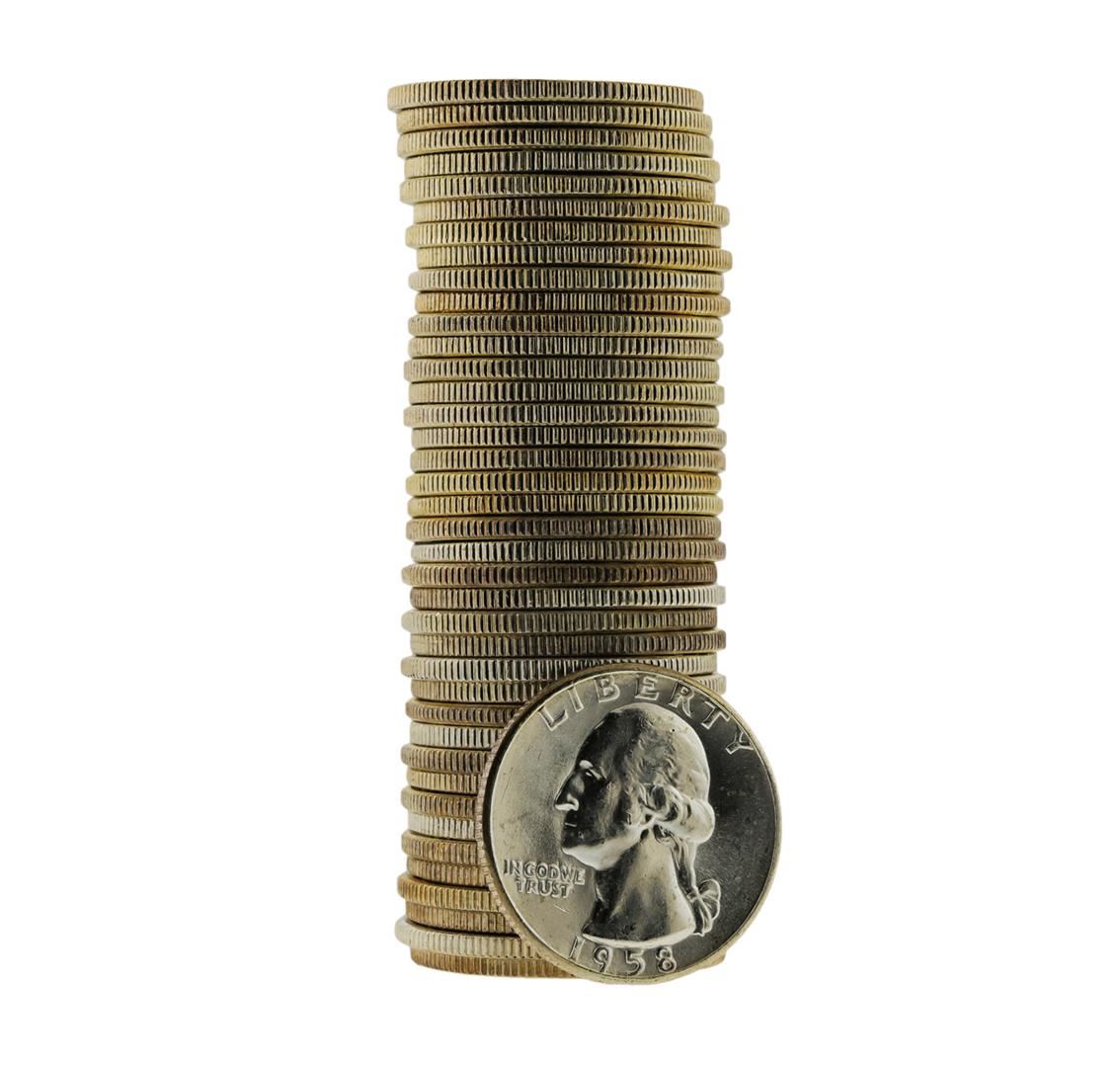 One Roll of (40) 1958-P Brilliant Uncirculated Washington Silver Quarters.