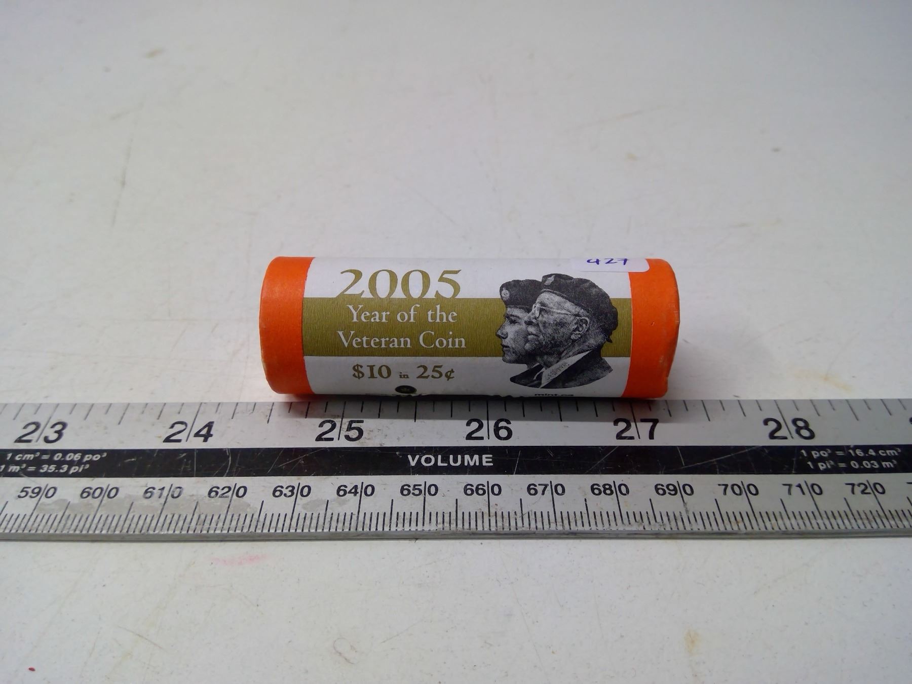 Roll of 40 2005P Year of the Veteran 25 Cents. Original unopened roll