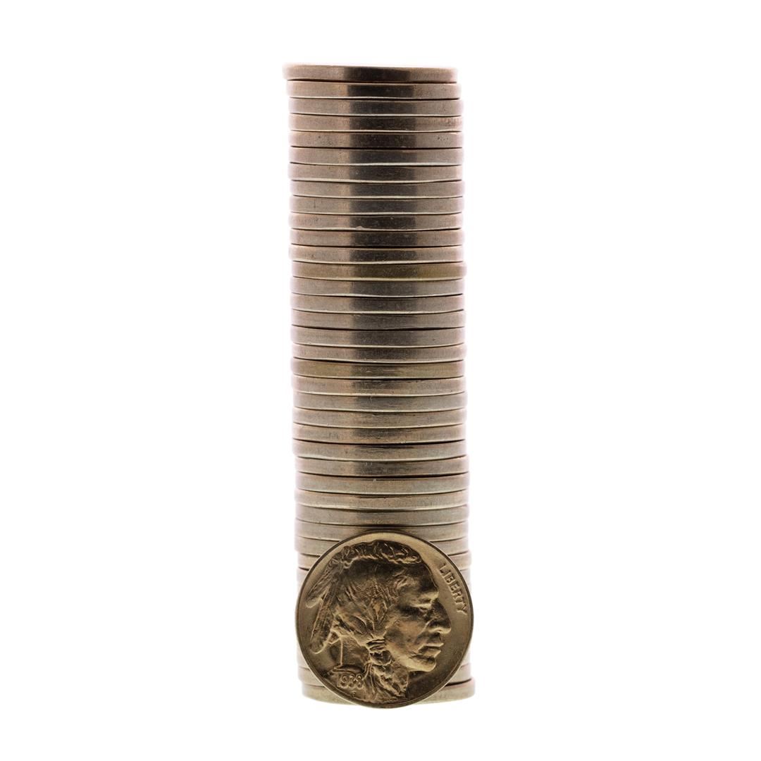 One Roll of (40) Brilliant Uncirculated 1938-D Buffalo Nickel Coins.