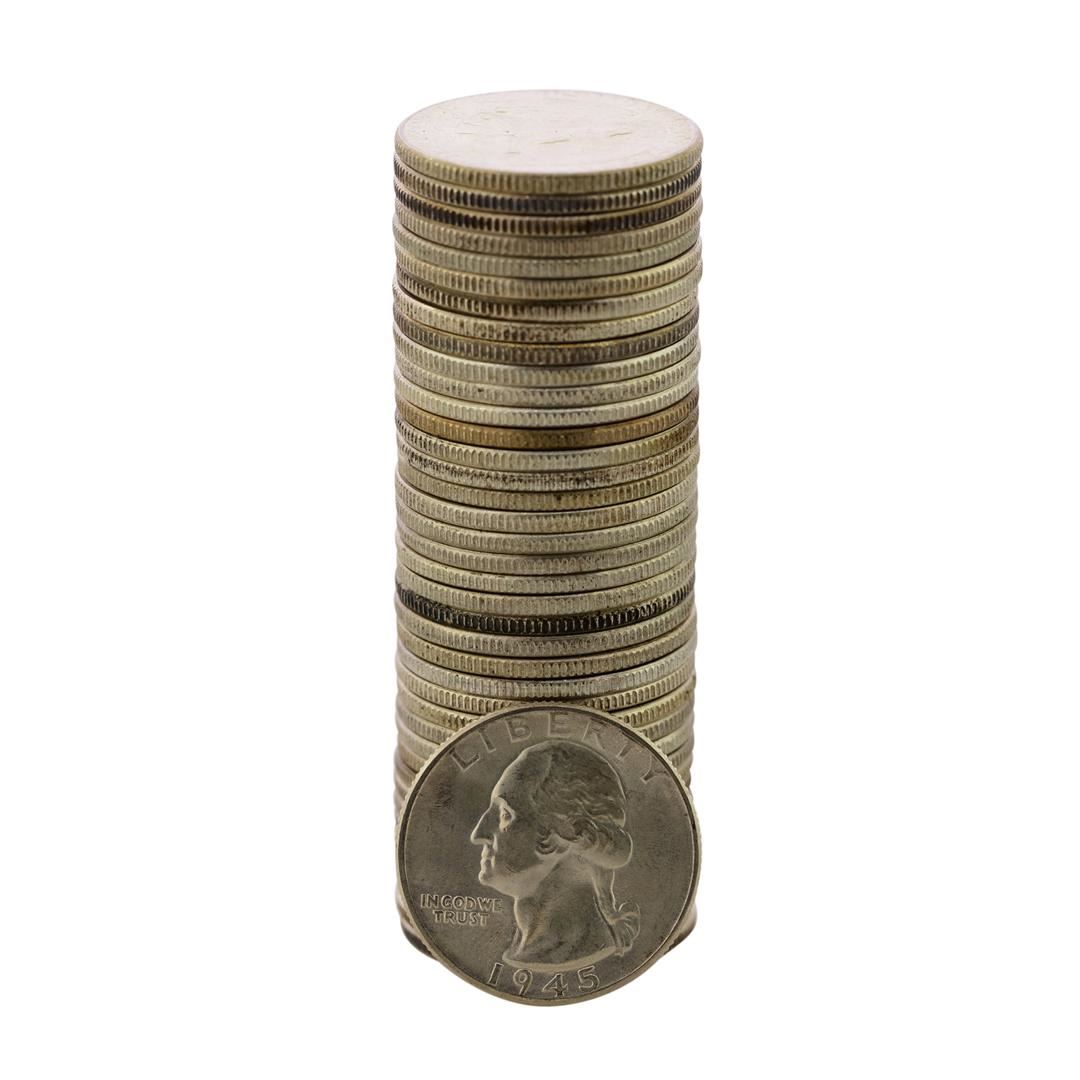 Roll of (40) Brilliant Uncirculated 1945 Washington Quarter Coins