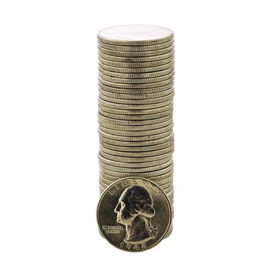 Roll of (40) Brilliant Uncirculated 1948 Washington Quarter Coins