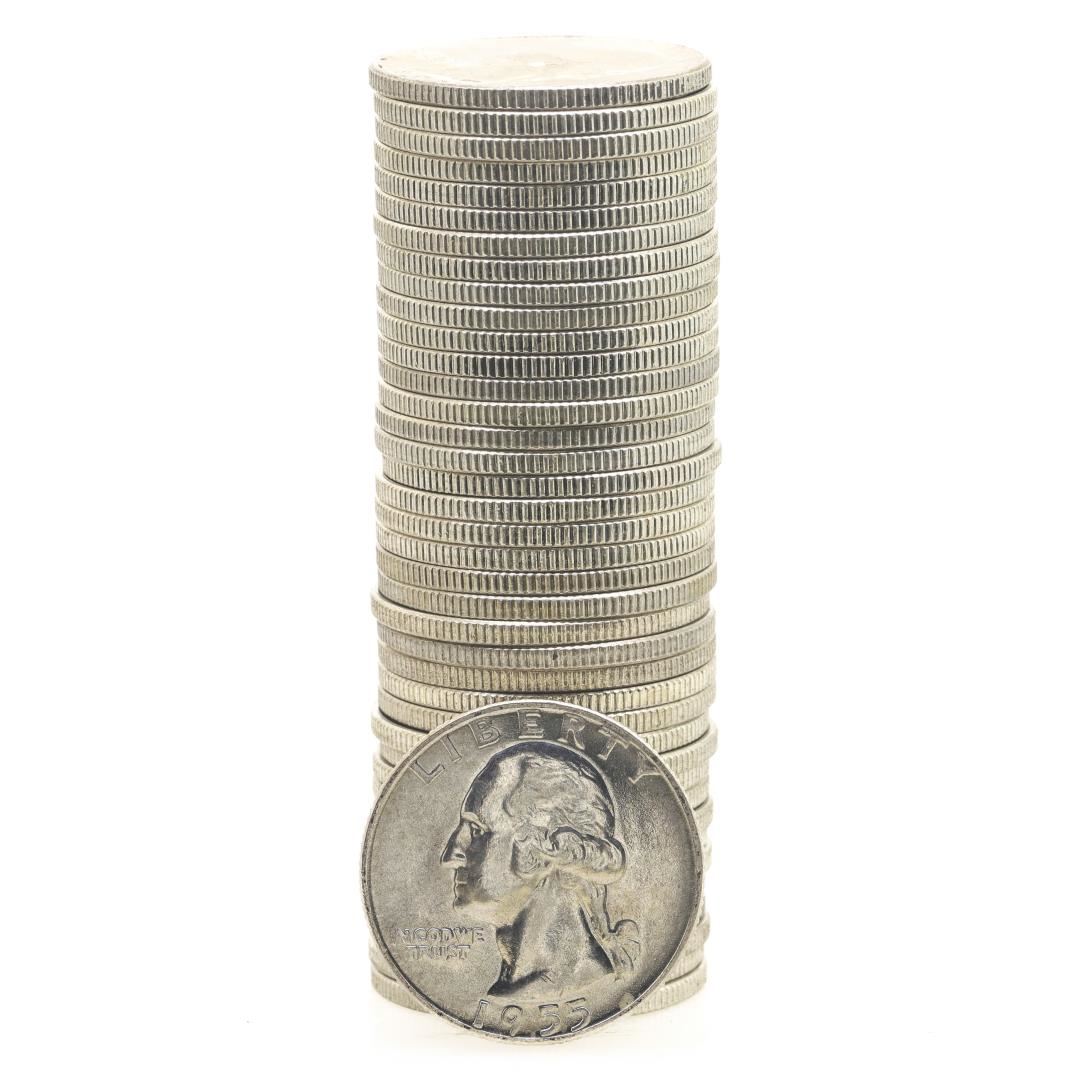 Roll of (40) Brilliant Uncirculated 1955-D Washington Quarter Coins