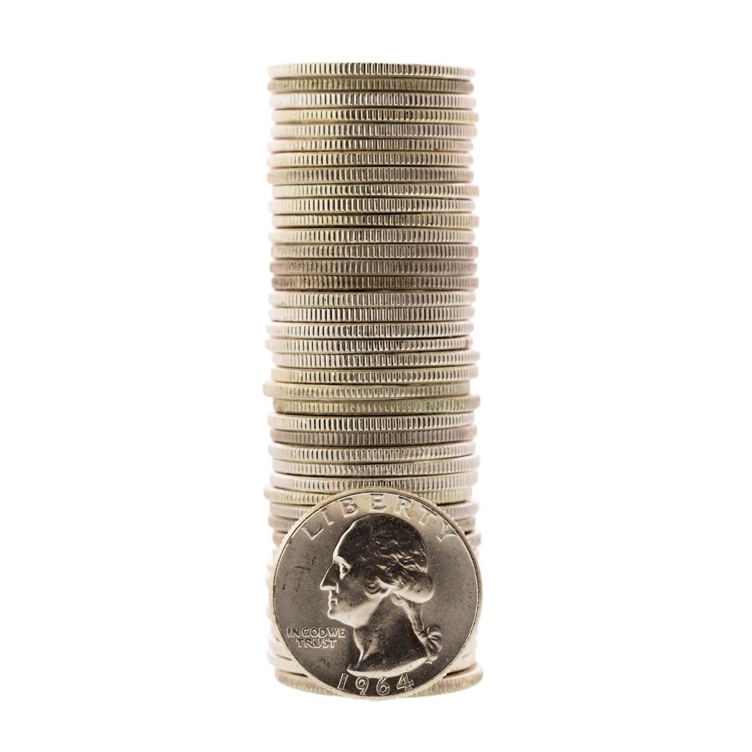 Roll of (40) Brilliant Uncirculated 1964 Washington Quarter Coins