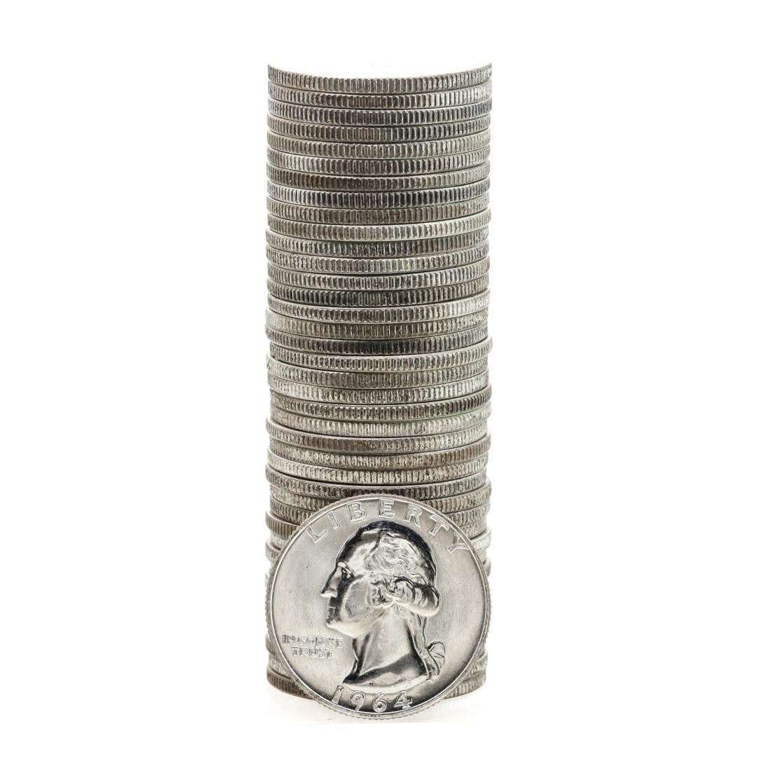 Roll of (40) Brilliant Uncirculated 1964 Washington Quarter Coins