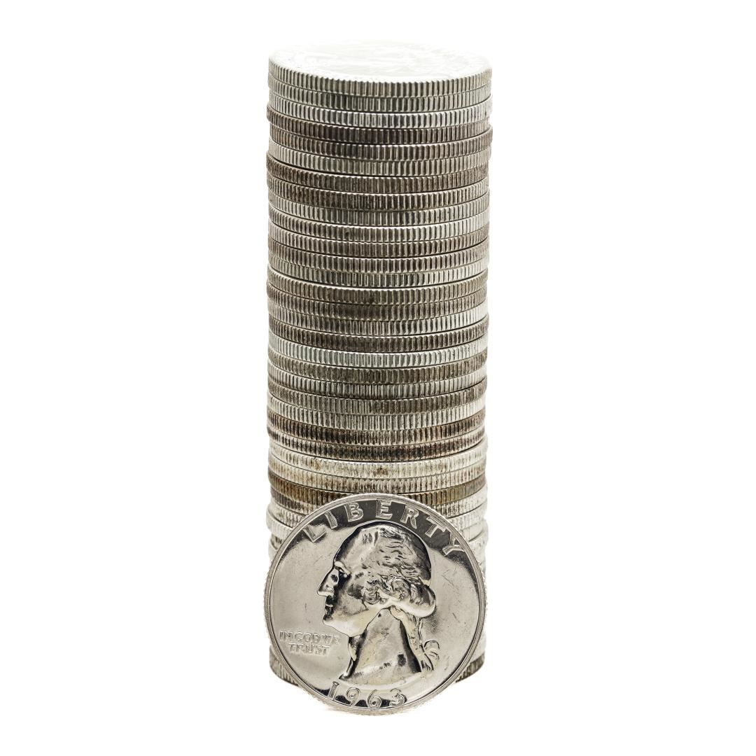 One Roll of (40) Proof 1963 Washington Quarter Coins.