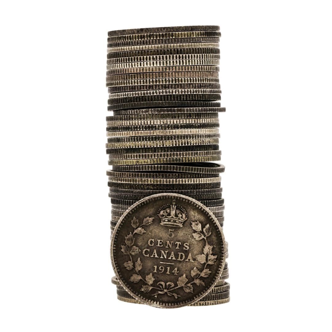 One Roll of (50) 1911-1921 George V Canadian Nickels.