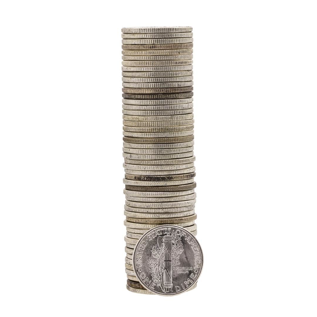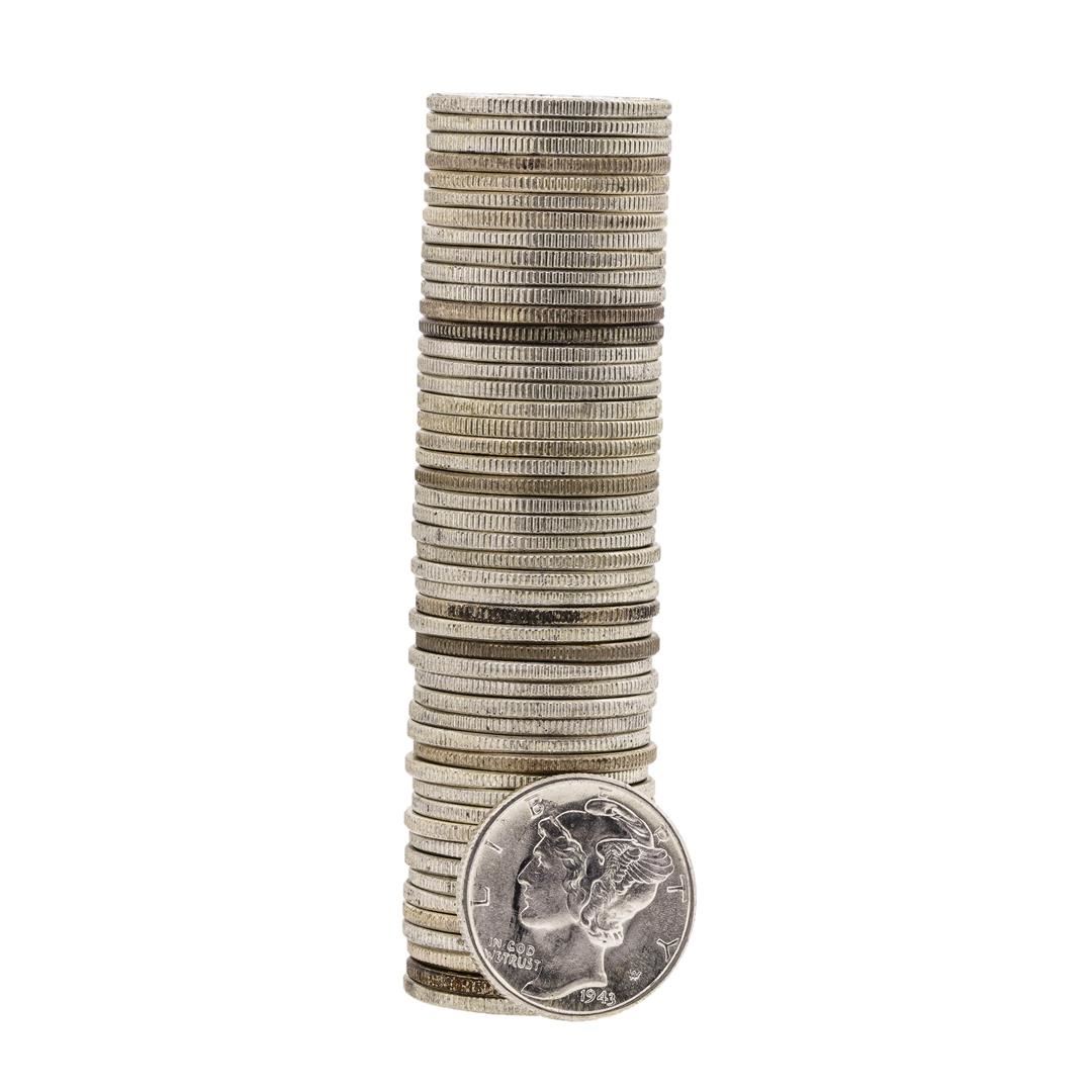 One Roll of (50) 1943 Brilliant Uncirculated Mercury Dimes.