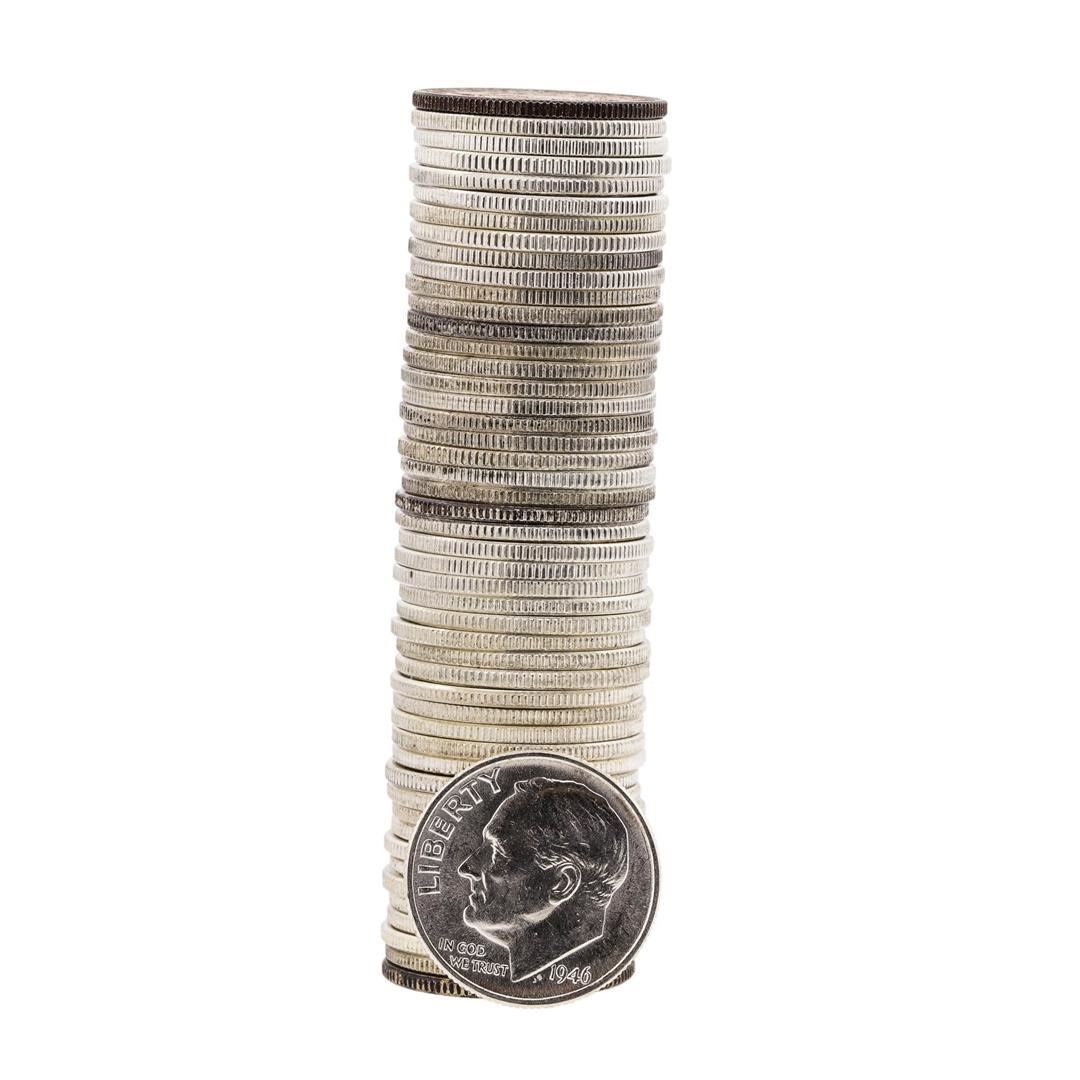 One Roll of (50) 1946 Brilliant Uncirculated Roosevelt Dimes.